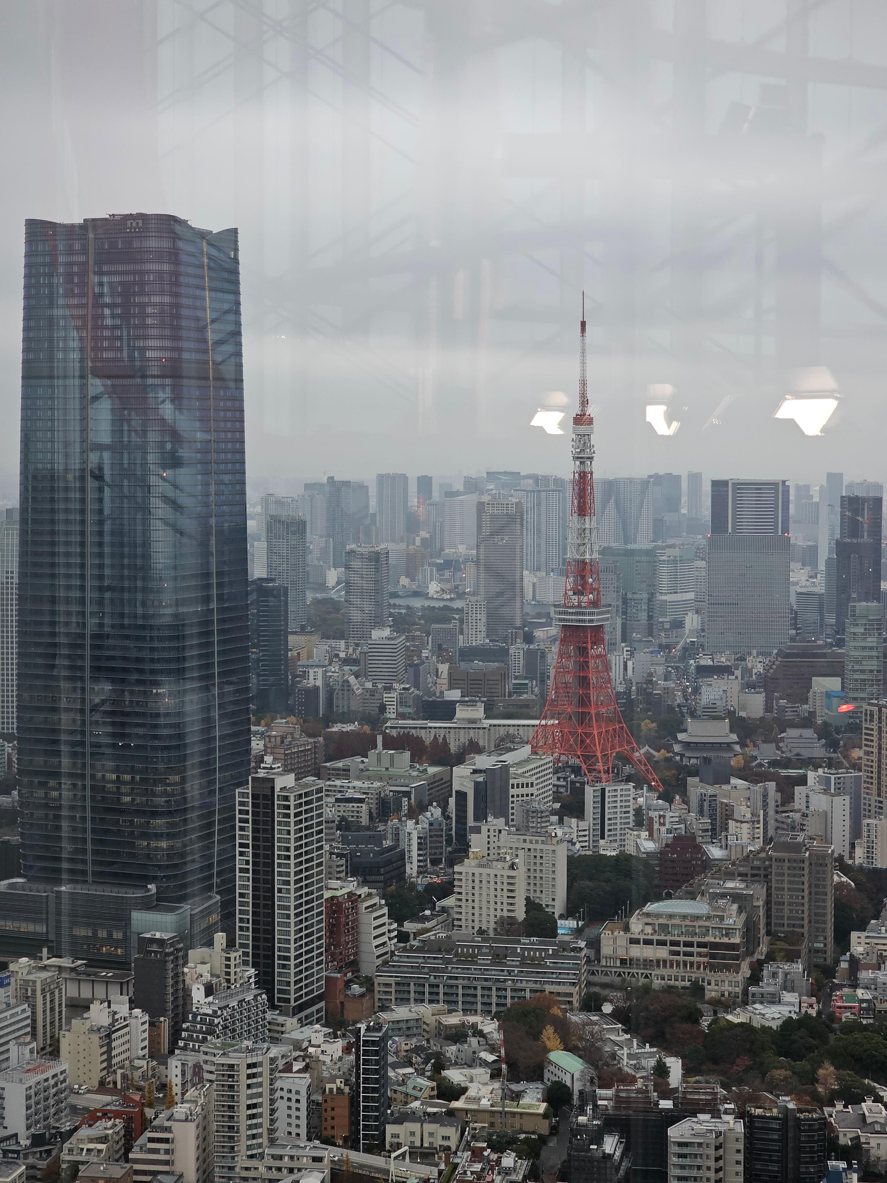 도쿄 타워를 예쁘게 볼 수 있는 자리였지만, 하늘이 참 아쉬웠습니다.