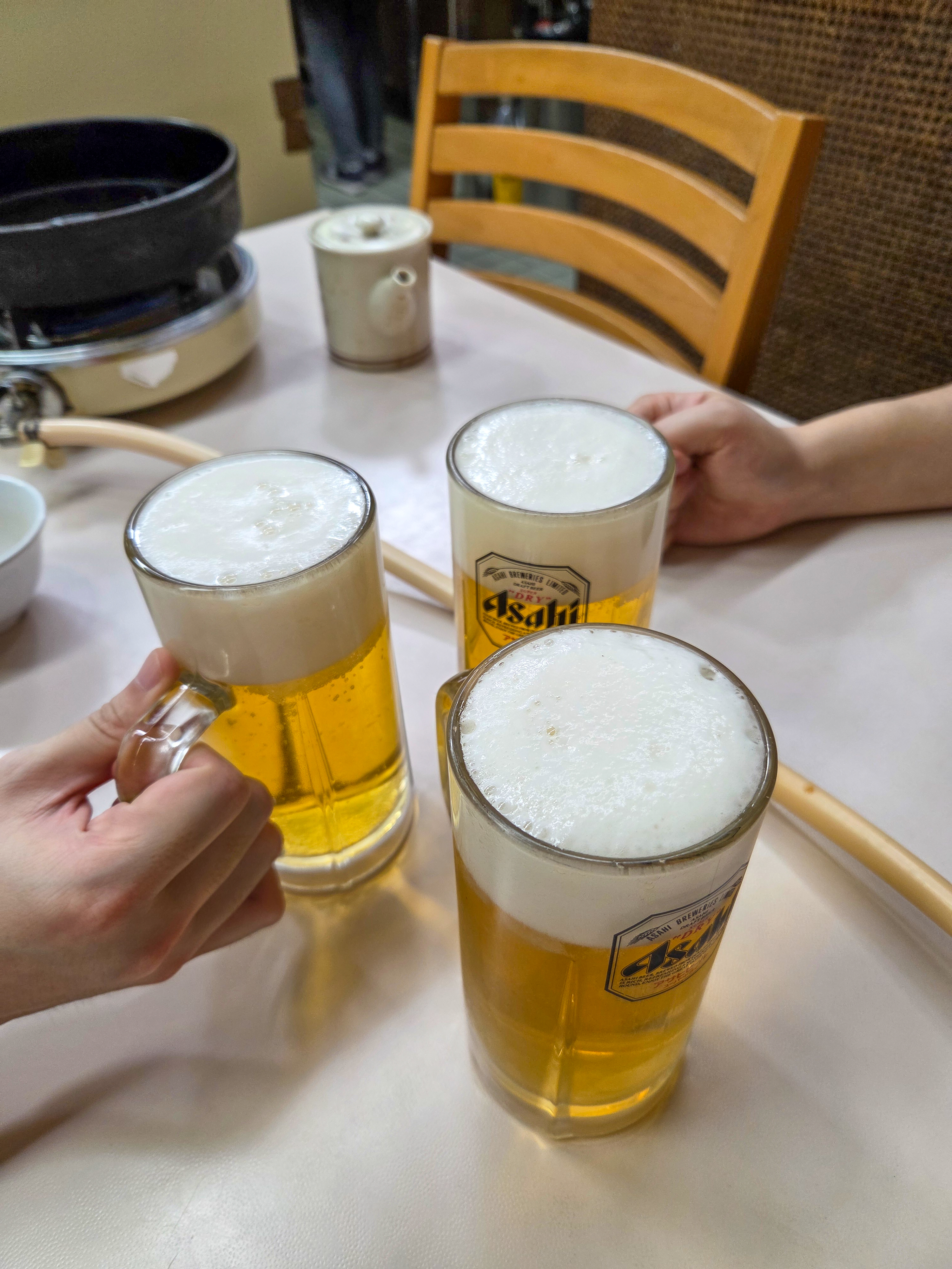 저희는 스키야키 3인분과 서비스 돈카츠 3개, 생맥 3잔을 시켰습니다.